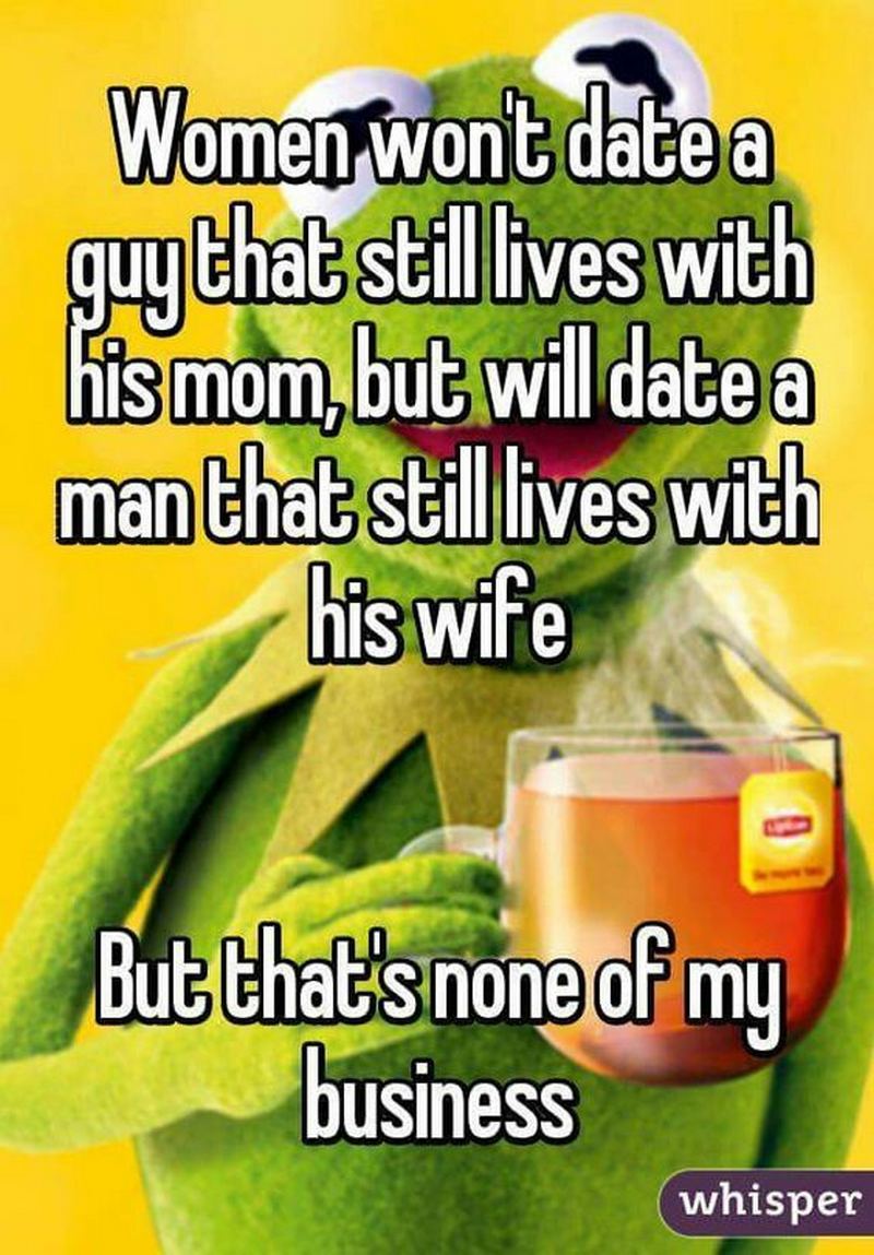 “Women won’t date a guy that still lives with his mom, but will date a man that still lives with his wife. But that’s none of my business.” – Unknown