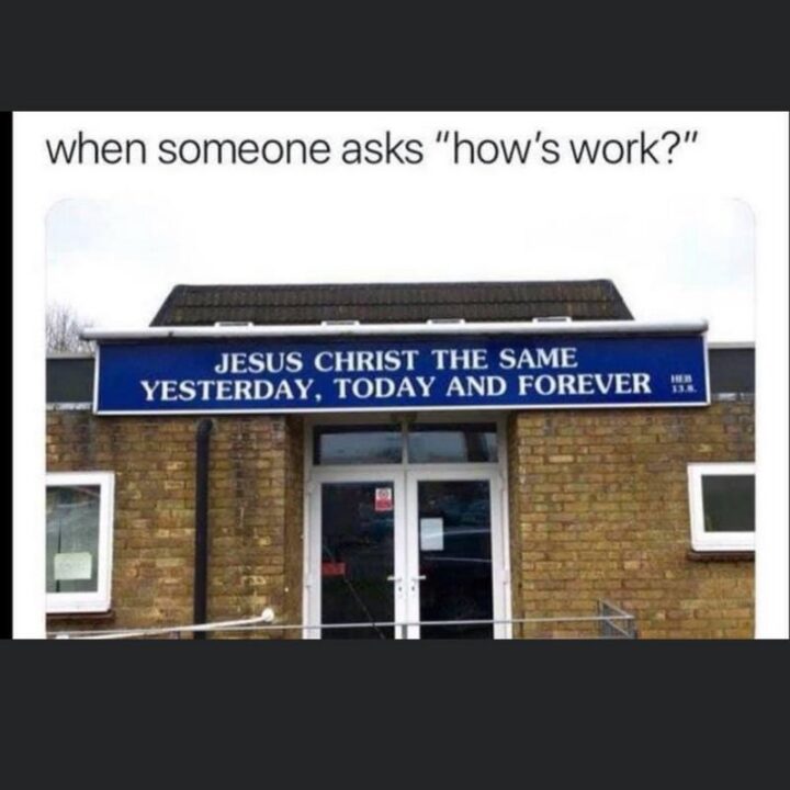 “When someone asks “How’s work?” Jesus Christ the same yesterday, today, and forever.”