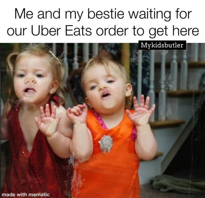 “My bestie and I waiting for our Uber Eats order to get here.”