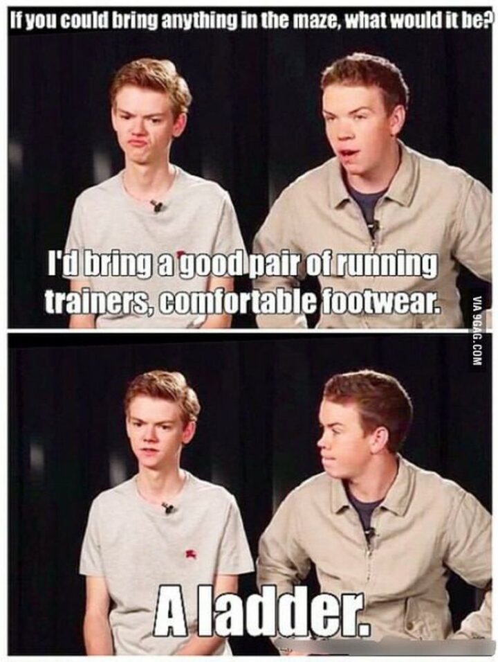 “If you could bring anything in the maze, what would it be? I’d bring a good pair of running trainers, comfortable footwear. A ladder.”