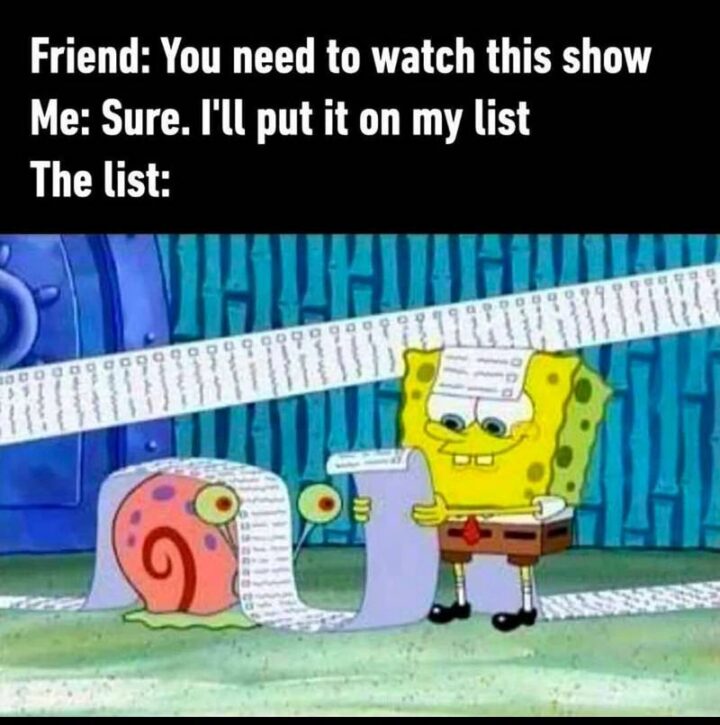 “Friend: You need to watch this show. Me: Sure. I’ll put it on my list. The list:”
