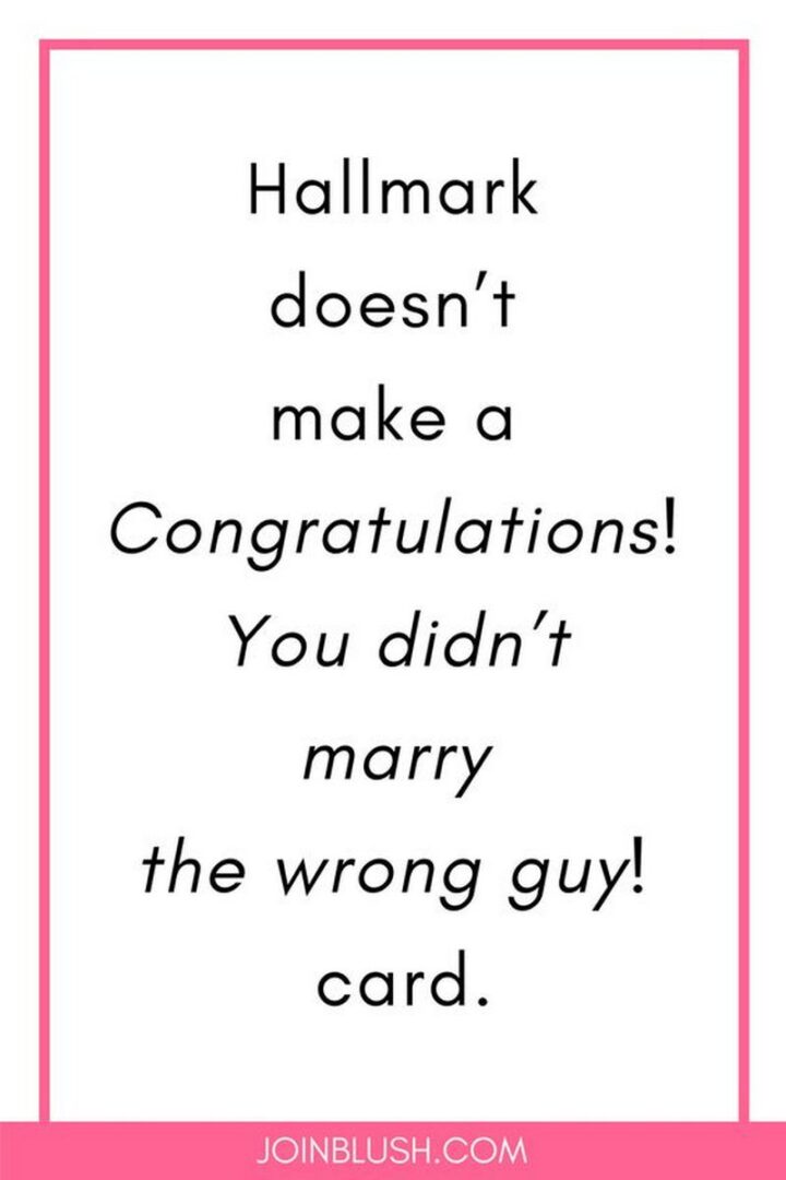 “Hallmark doesn’t make a “Congratulations! You didn’t marry the wrong guy!” card.”