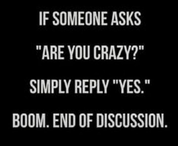 “If someone asks “Are you crazy?” simply reply “Yes”. Boom. End of discussion.”