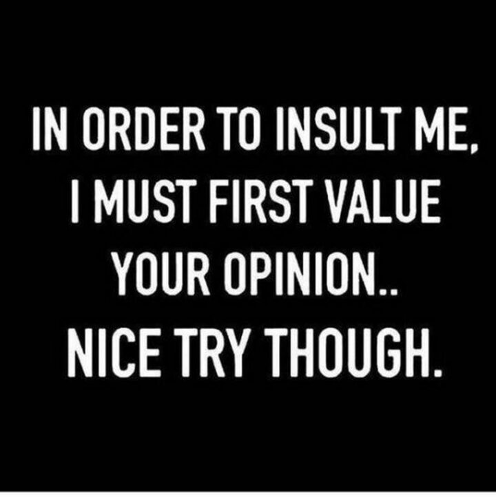 “In order to insult me, I must first value your opinion…Nice try though.”