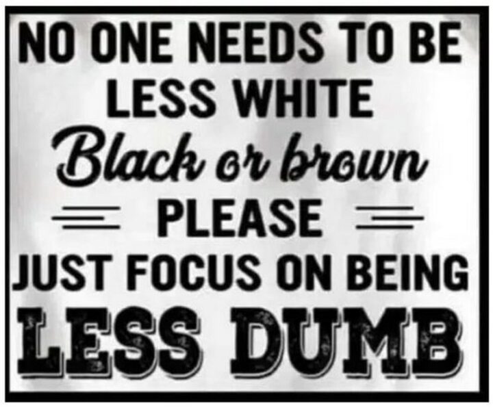 “No one needs to be less white, black, or brown. Please just focus on being less dumb.”