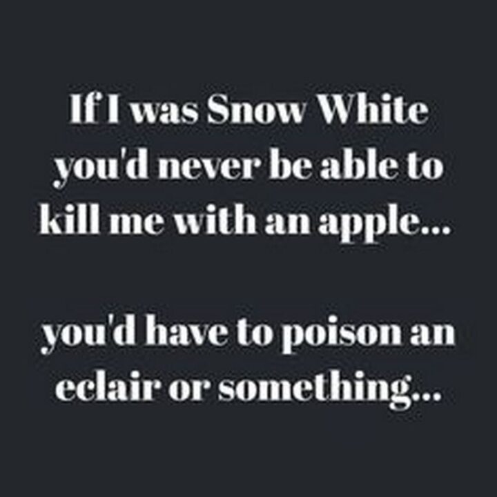 “If I was Snow White you’d never be able to kill me with an apple…You’d have to poison an eclair or something…”