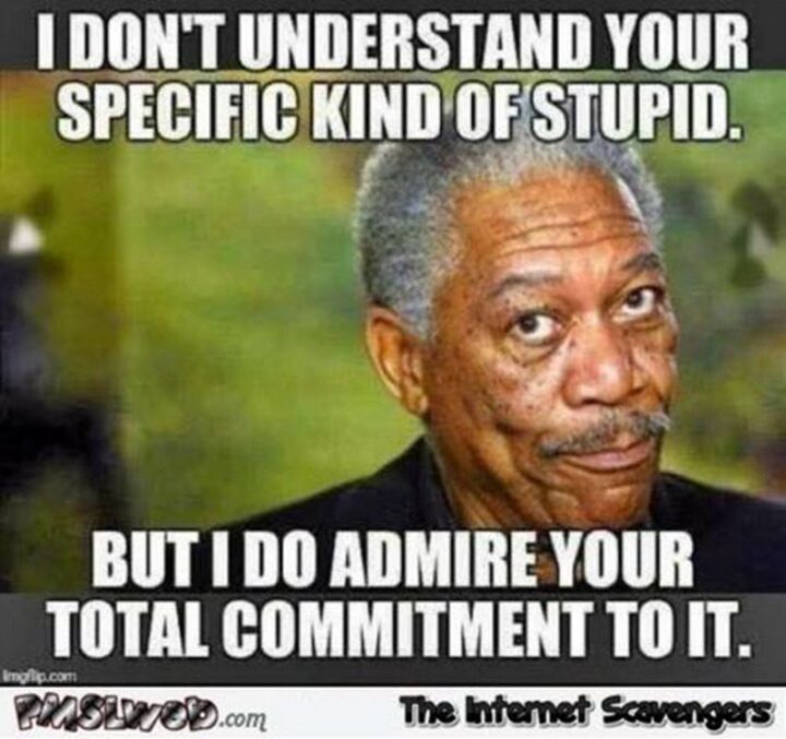 “I don’t understand your specific kind of stupid but I do admire your total commitment to it.”