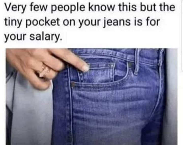 “Very few people know this but the tiny pocket on your jeans is for your salary.”