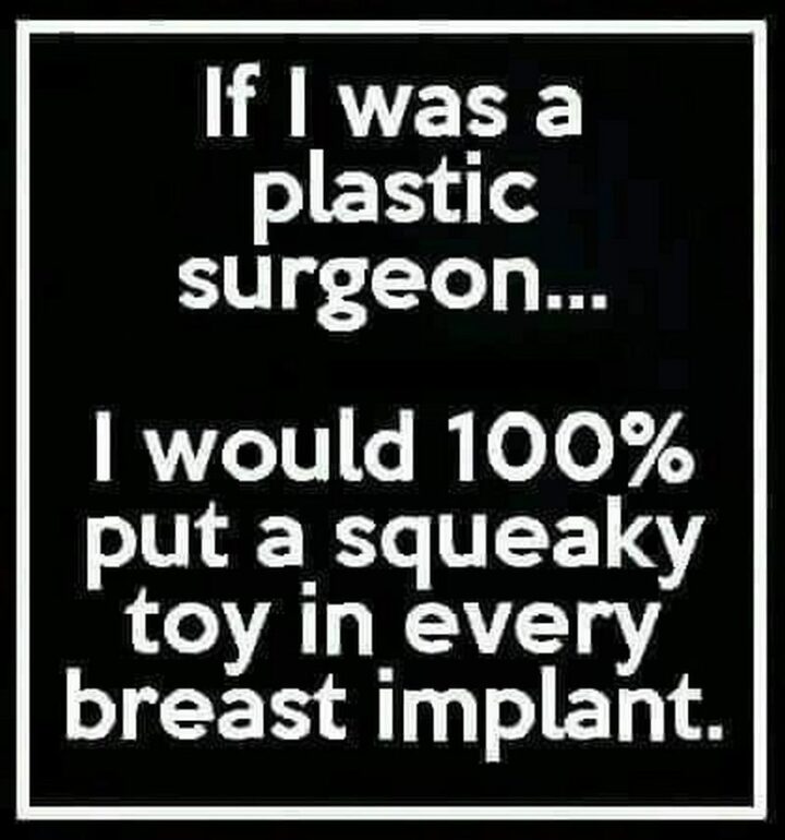 “If I was a plastic surgeon…I would 100% put a squeaky toy in every breast implant.”
