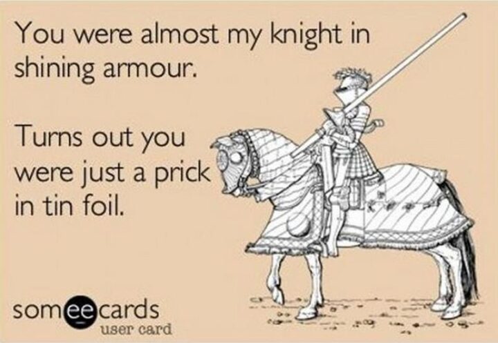 “You were almost my knight in shining armor. Turns out you were just a prick in tin foil.”