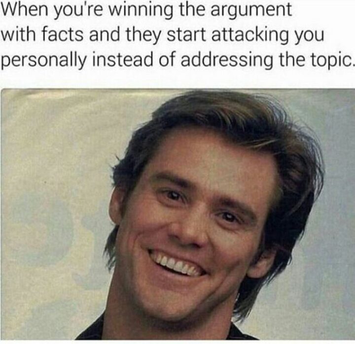 “When you’re winning the argument with facts and they start attacking you personally instead of addressing the topic.”