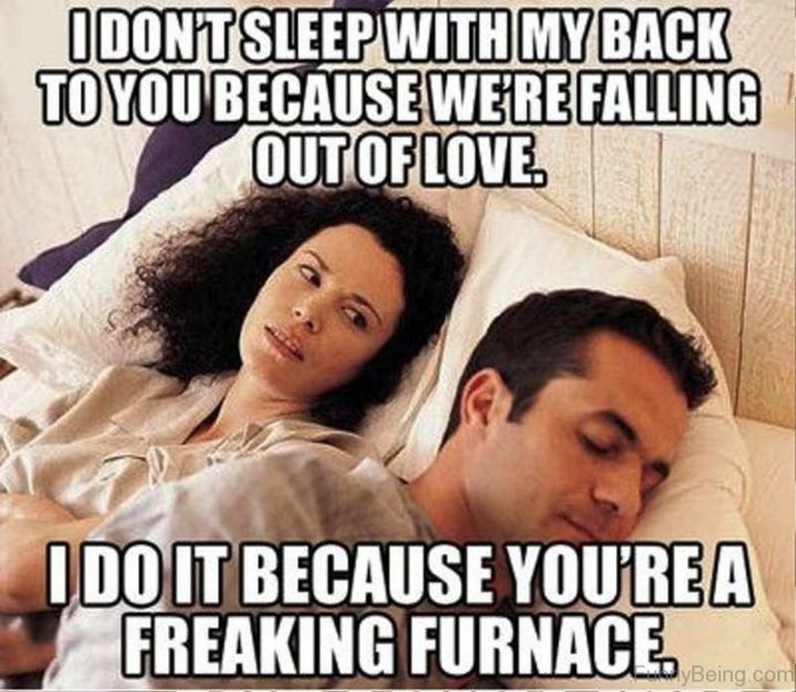 “I don’t sleep with my back to you because we’re falling out of love. I do it because you’re a freaking furnace.”