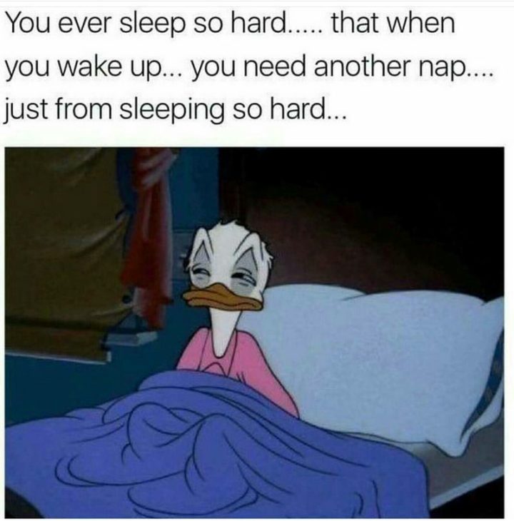 “You ever sleep so hard…that when you wake up…you need another nap…just from sleeping so hard…”