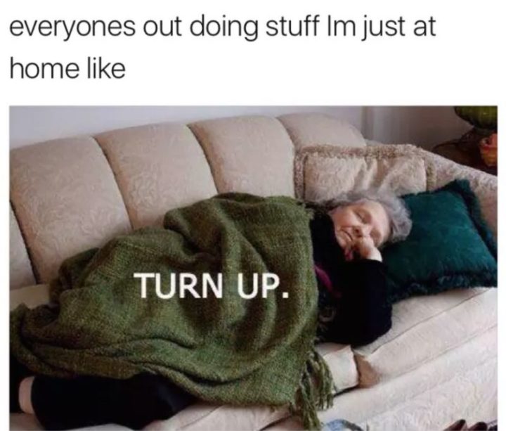 “Everyone’s out doing stuff I’m just a home like: Turn up.”