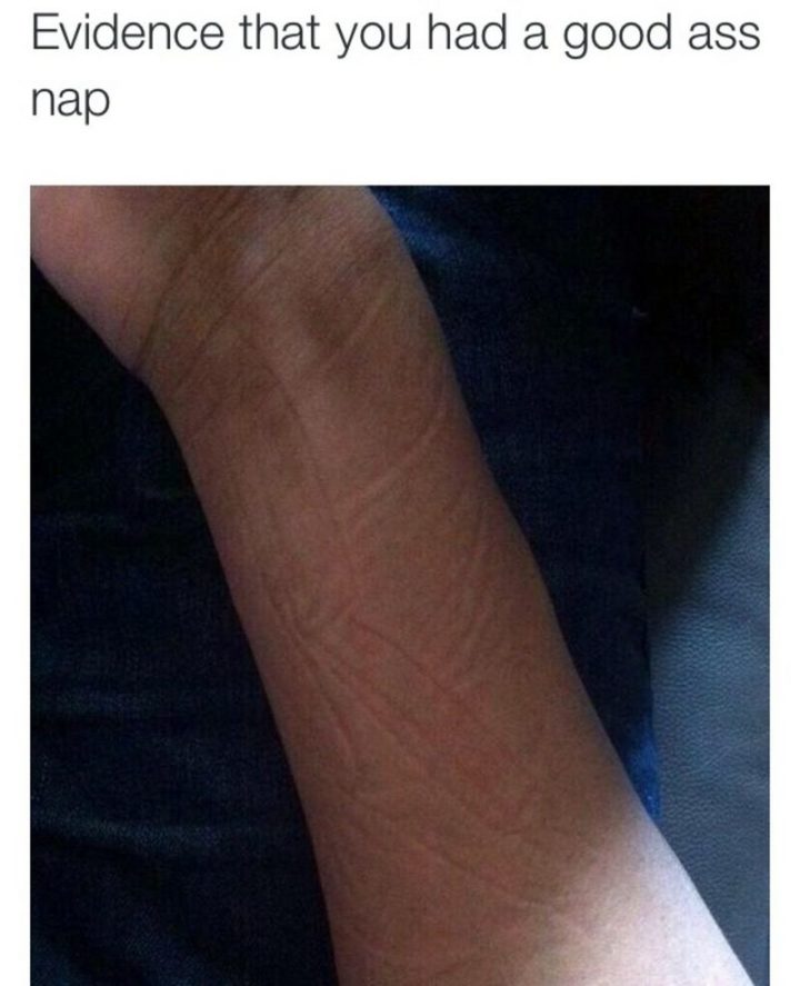“Evidence that you had a good @$$ nap.”