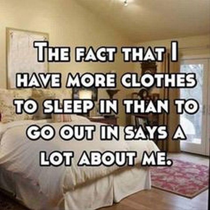 “The fact that I have more clothes to sleep in than to go out in says a lot about me.”