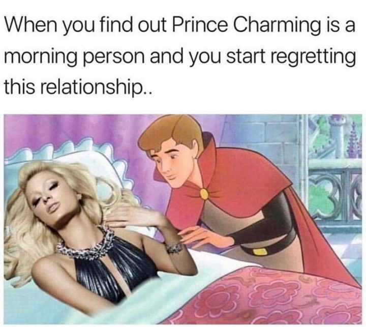 “When you find out Prince Charming is a morning person and you start regretting this relationship.”