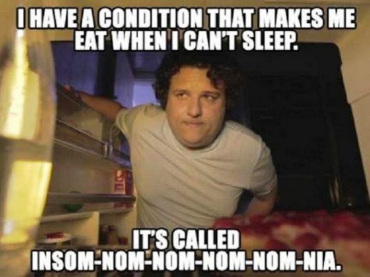 “I have a condition that makes me eat when I can’t sleep. It’s called insom-nom-nom-nom-nom-nia.”