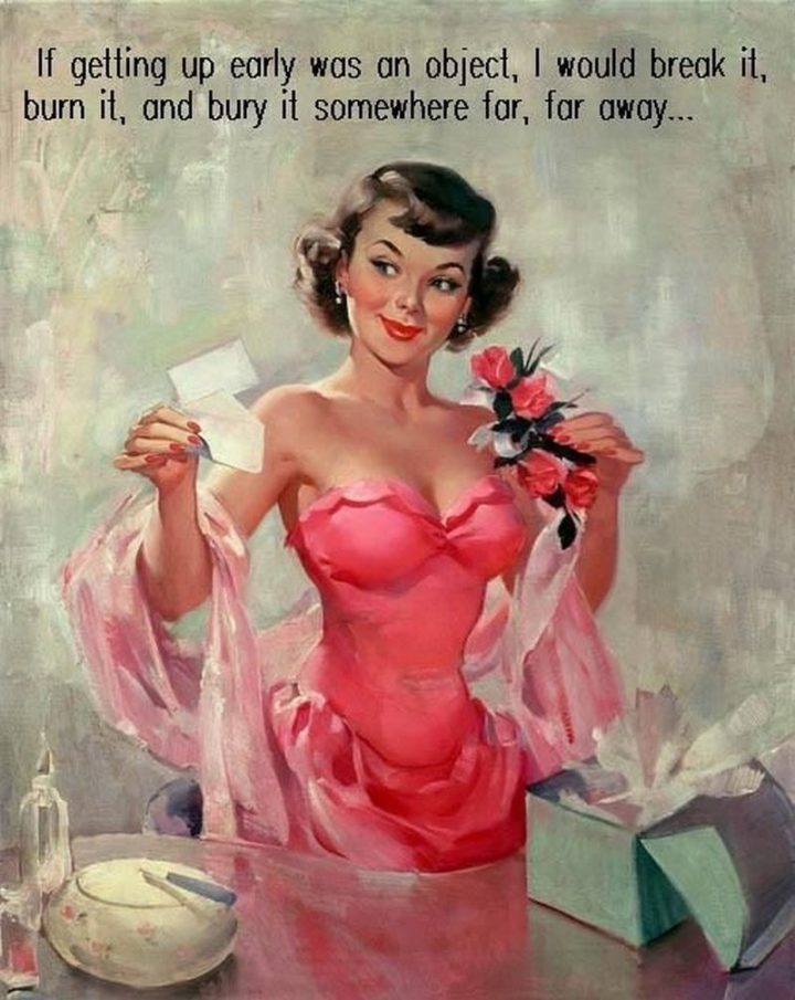 “If getting up early was an object, I would break it, burn it, and bury it somewhere far, far away…”
