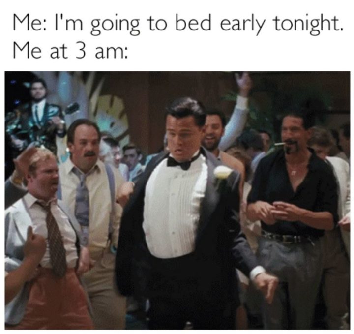 “Me: I’m going to bed early tonight. Me at 3 am:”