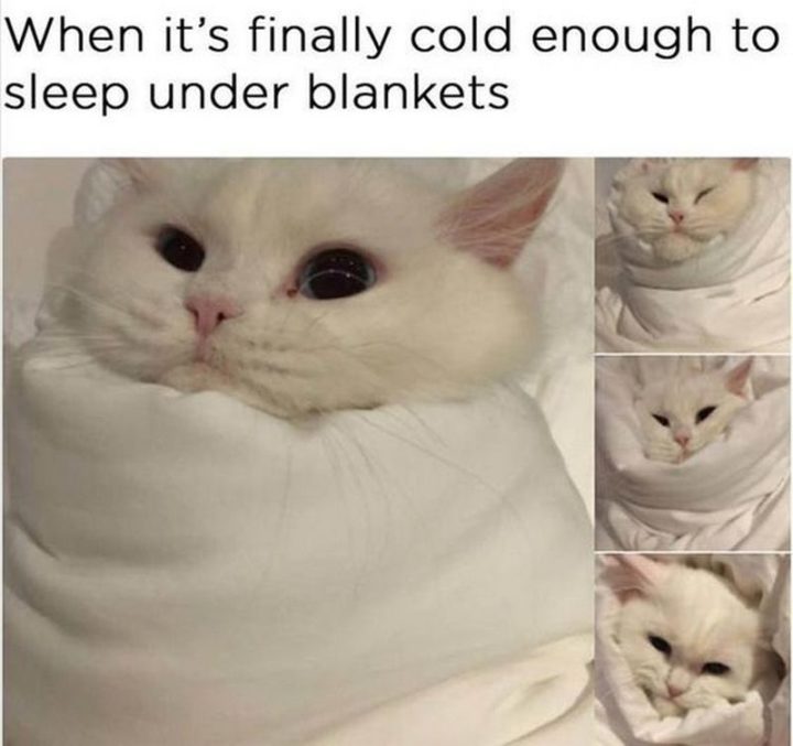 “When it’s finally cold enough to sleep under blankets.”