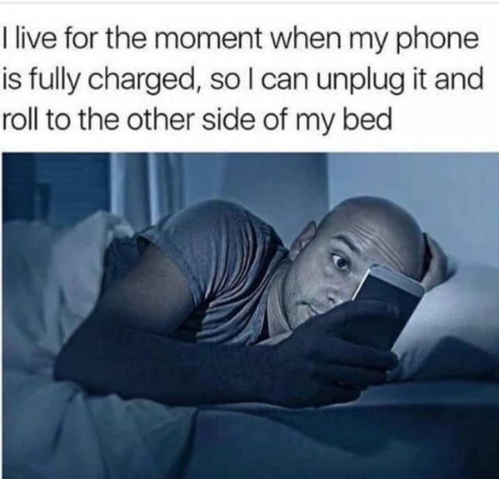 “I live for the moment when my phone is fully charged, so I can unplug it and roll to the other side of my bed.”