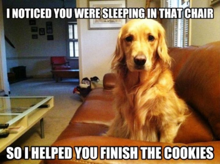 “I noticed you were sleeping in that chair so I helped you finish the cookies.”