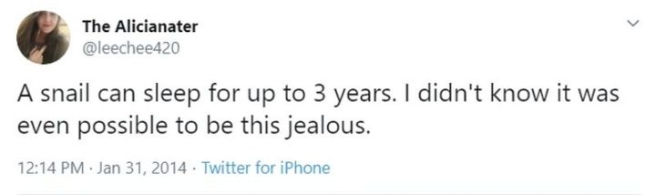 “A snail can sleep for up to 3 years. I didn’t know it was even possible to be this jealous.”