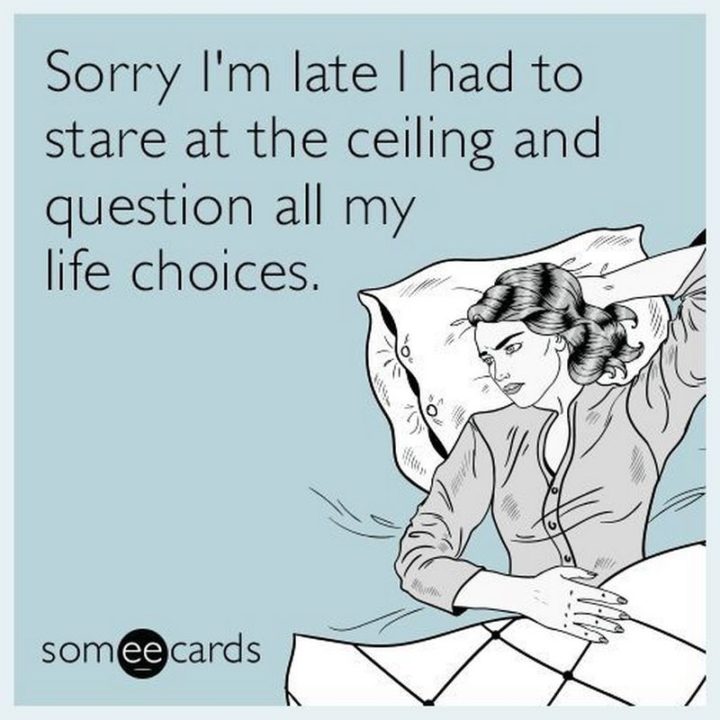 “Sorry, I’m late. I had to stare at the ceiling and question all my life choices.”