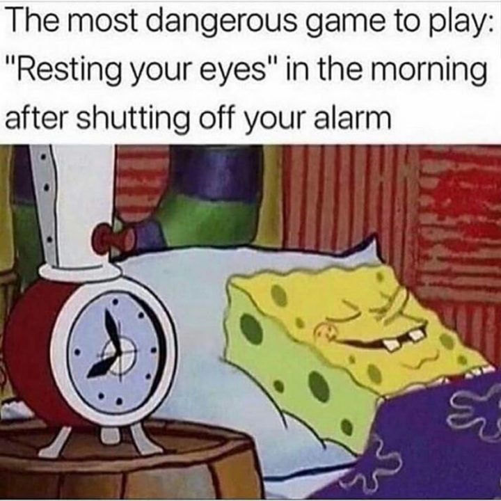 “The most dangerous game to play: ‘Resting your eyes’ in the morning after shutting off your alarm.”