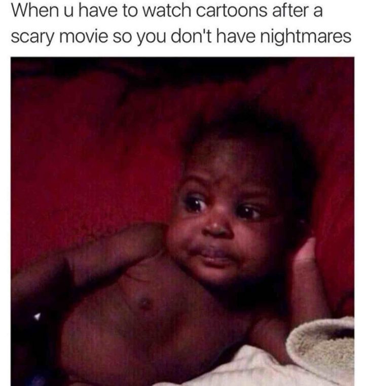“When u have to watch cartoons after a scary movie so you don’t have nightmares.”