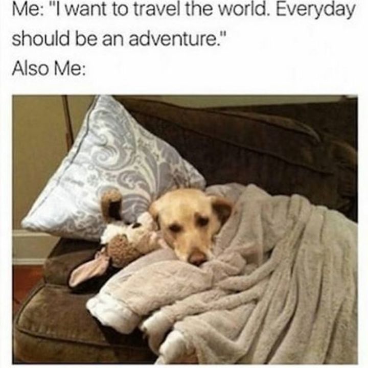 “Me: I want to travel the world. Every day should be an adventure. Also me:”