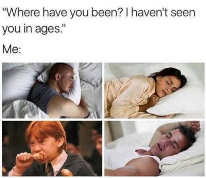 24) Sleep memes: Me too.