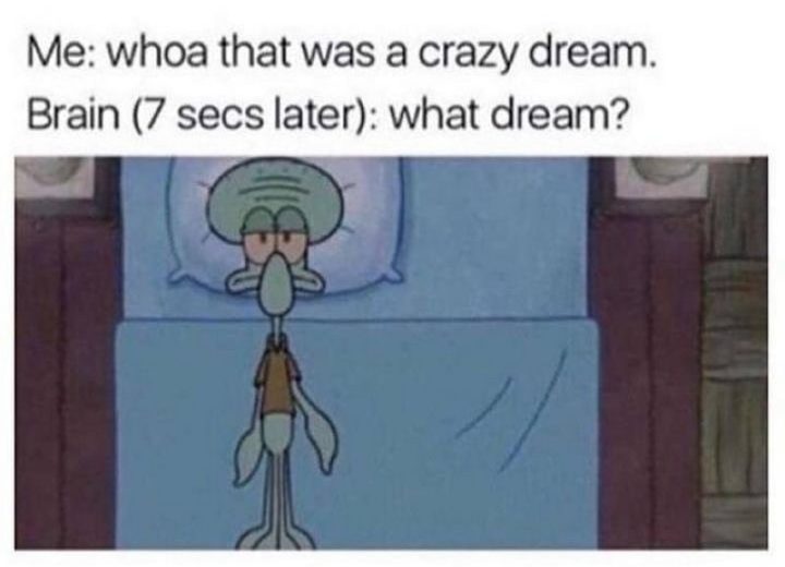 “Me: Whoa that was a crazy dream. Brain (7 secs later): What dream?”