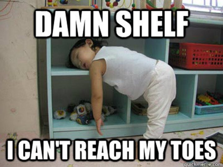 “Damn shelf. I can’t reach my toes.”