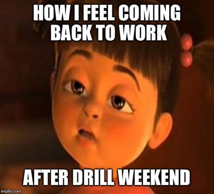 “How I feel coming back to work after drill weekend.”