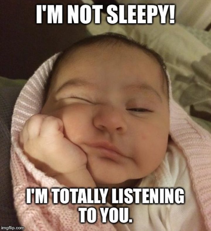 “I’m not sleepy! I’m listening to you.”