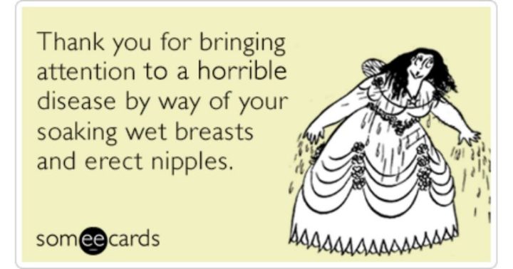 “Thank you for bringing attention to a horrible disease by way of your soaking wet breasts and erect nipples.”