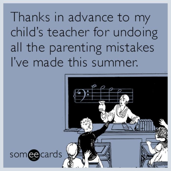 “Thanks in advance to my child’s teacher for undoing all the parenting mistakes I’ve made this summer.”