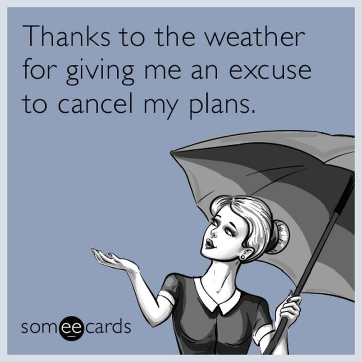 “Thanks to the weather for giving me an excuse to cancel my plans.”