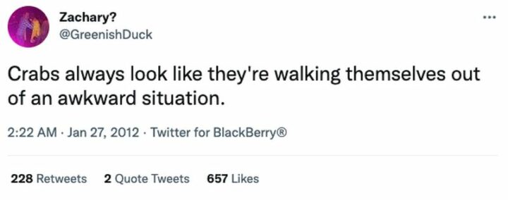 5) “Crabs always look like they’re walking themselves out of an awkward situation.”