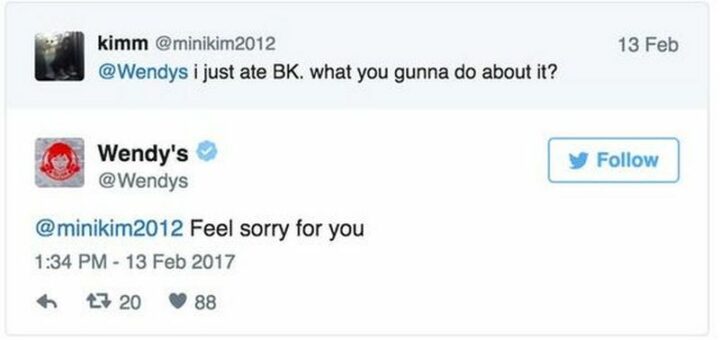 13) “I just ate Burger King, what are you gonna do about it? Feel sorry for you.”