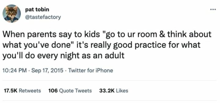 18) “When parents say to kids ‘Go to your room and think about what you’ve done.’ It’s really good practice for what you’ll do every night as an adult.”