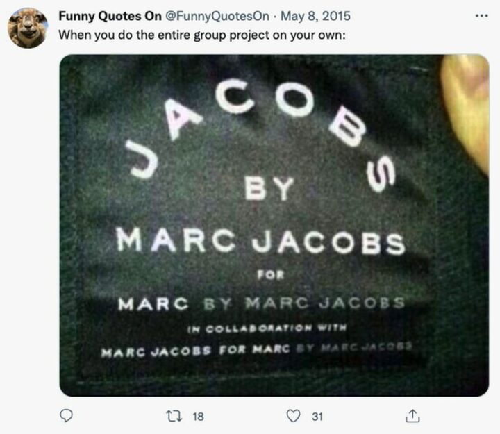 28) “When you do the entire group project on your own: Jacobs by Marc Jacobs for Marc by Marc Jacobs in collaboration with Marc Jacobs for Marc by Marc Jacobs.”