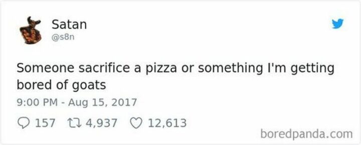 23) “Someone sacrifice a pizza or something I’m getting bored of goats.”