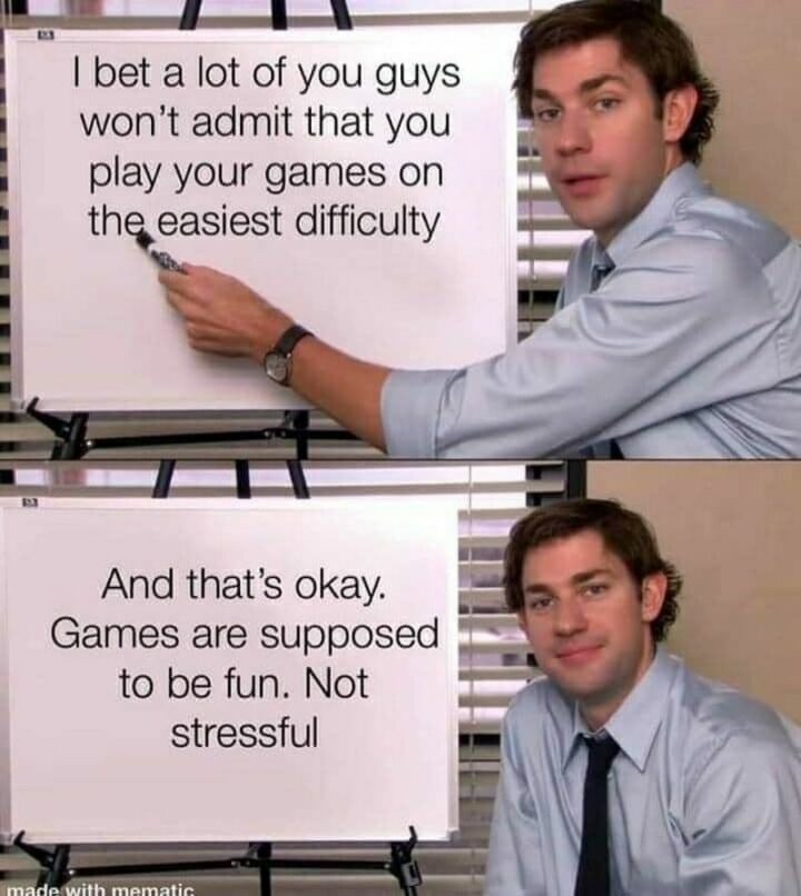 “I bet many of you guys won’t admit that you play your games on the easiest difficulty. And that’s okay. Games are supposed to be fun. Not stressful.”