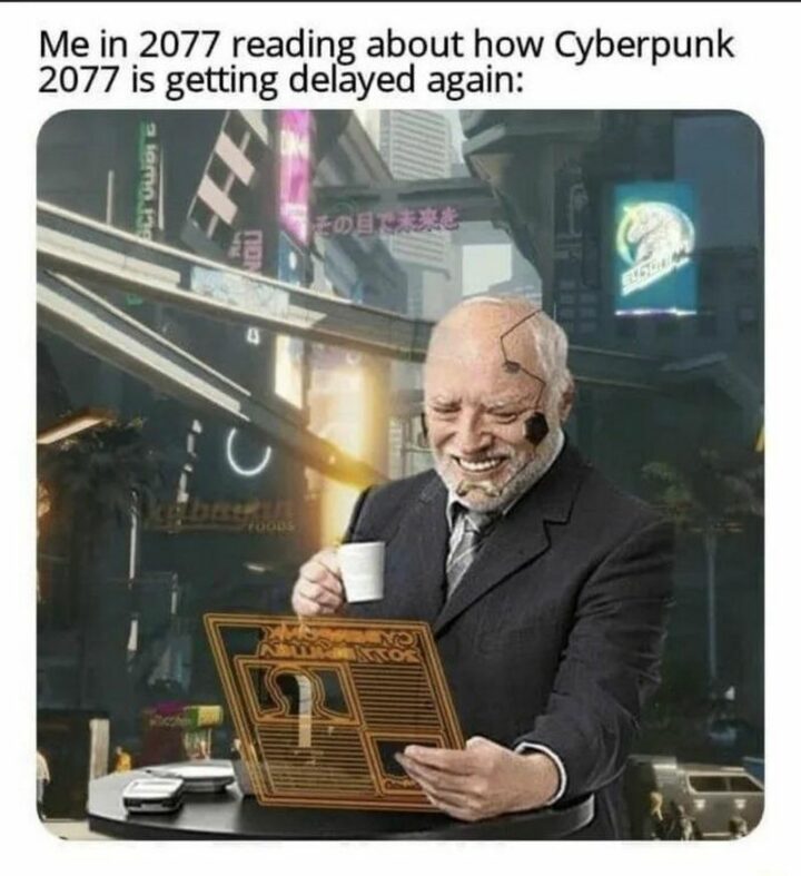 “Me in 2077 reading about how Cyberpunk 2077 is getting delayed again:”