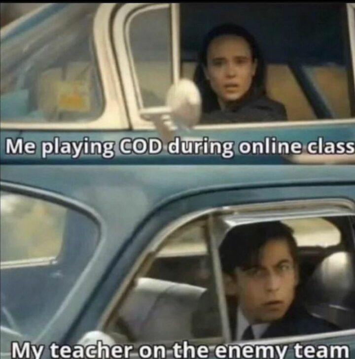 “Me playing COD during an online class. My teacher on the enemy team.”