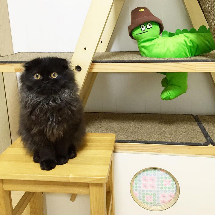 As you can tell, Gimo the cat has lots of toys and hobbies to keep him busy.