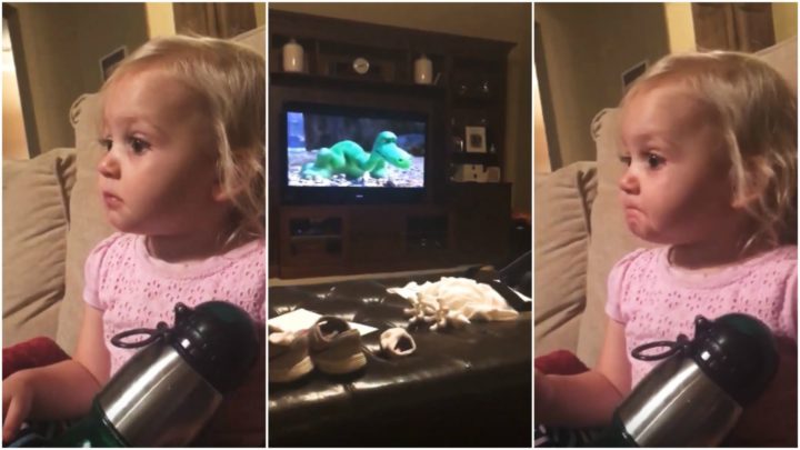If you’ve watched Pixar’s ‘The Good Dinosaur’, you’ll obviously remember the sad scene when Poppa dinosaur gets swept away by a raging river while saving his son. It’s this scene in particular that brought out so much emotion in a 2-year-old little girl. As she watches the scene with her mother, her eyes can’t hold the tears. It is so cute as she tries to explain what just happened to her mom.